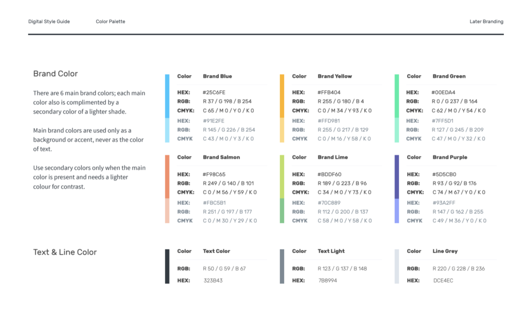 To właśnie projektanci nazywają przewodnik po stylu – i robi dokładnie to, co jest napisane na puszce. Jest to punkt odniesienia dla wszystkich decyzji projektowych, w tym palety kolorów marki, czcionek, logo, stylu fotografii i uwag aplikacyjnych.