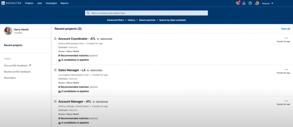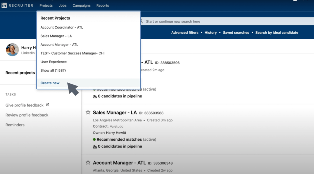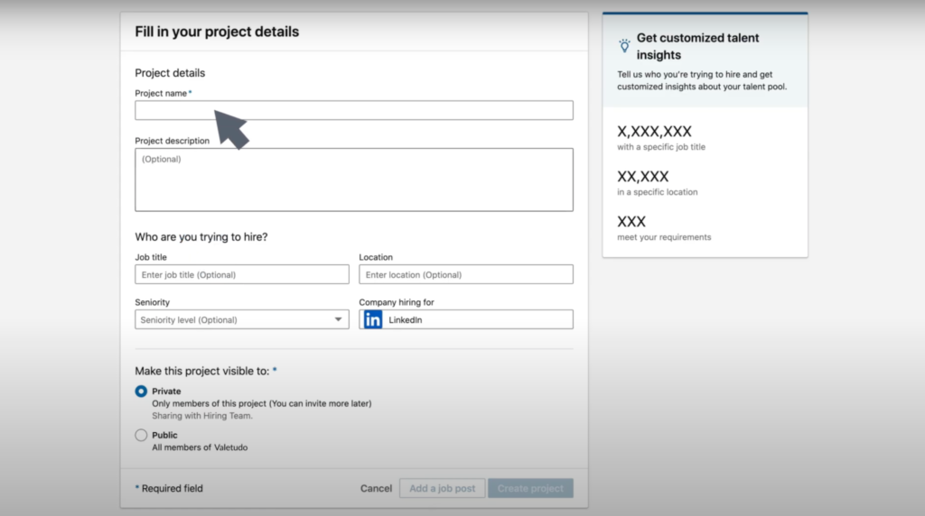 Po zarejestrowaniu się po prostu zaloguj się do LinkedIn Recruiter i utwórz nowy projekt, aby rozpocząć wprowadzanie informacji o roli, do której zatrudniasz.