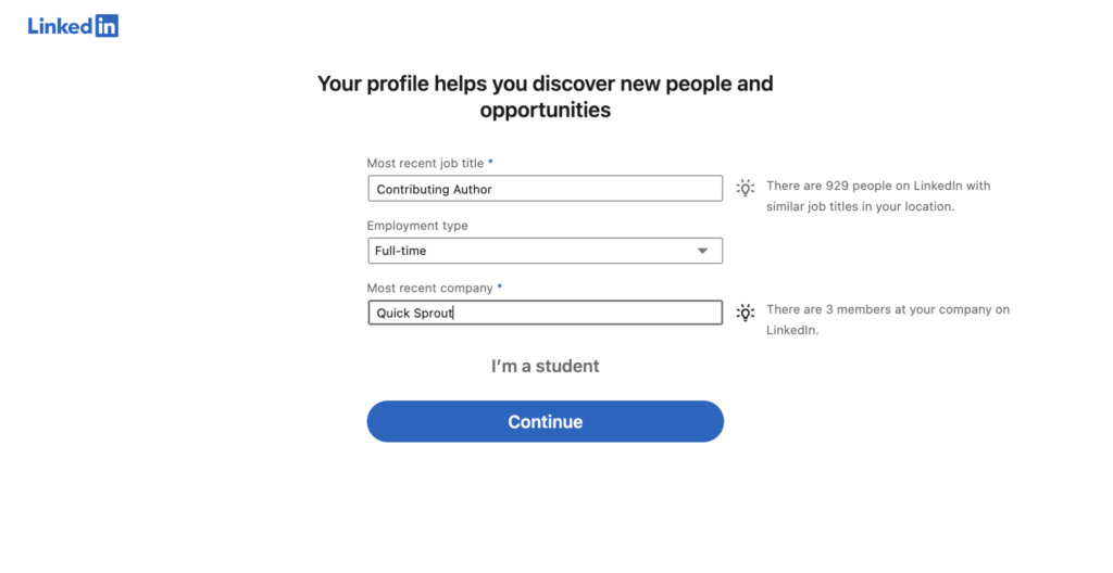 Zacznij od skonfigurowania konta LinkedIn, jeśli jeszcze go nie masz.