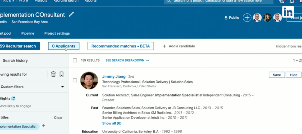 Ponieważ oprócz oceny aplikacji potencjalnych kandydatów i odpowiedzi na twoje działania informacyjne, będziesz chciał poszukać pewnych informacji na ich profilu—zarówno w celu odniesienia się do CV kandydata, jak i dowiedzieć się więcej, których nie znajdziesz w CV.