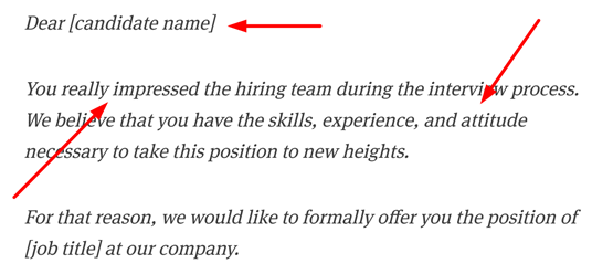 Oferty te mogły rozpocząć się od nieformalnej rozmowy z kimś już w Twoim zespole, ale nadal wymagają listu ofertowego, który należy wysłać do kandydata, aby stał się oficjalny.