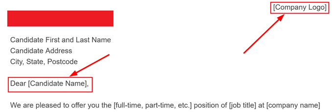 W przypadku logo firmy upewnij się, że używasz oficjalnego papieru firmowego logo firmy, ponieważ dodaje to poczucia profesjonalizmu i legitymizacji. Posiadanie obu tych cech zainspiruje kandydata do dokładniejszego zapoznania się z listem ofertowym.