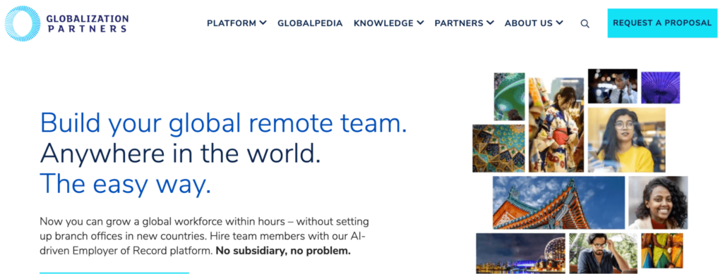 Globalization Partners zarządza procesem wdrażania, aby zapewnić zgodność z przepisami. Zajmują się również administracją płac i świadczeń w 187 krajach. Obejmuje to zgłoszenia podatkowe i inne przepisy obowiązujące w danym kraju.