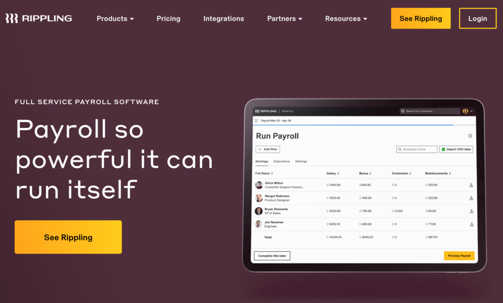 Jeśli Twoja firma zatrudnia mniej niż 1000 pracowników i chcesz w prosty sposób zarządzać międzynarodowymi płacami, Rippling powinien znajdować się na górze listy.