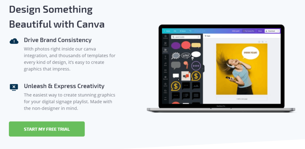 Użytkownicy uwielbiają intuicyjność obsługi od momentu zalogowania się do Pulpitu nawigacyjnego. Ułatwia budowanie wyświetlaczy dzięki funkcji przeciągania i upuszczania, a użytkownicy uwielbiają to, że umożliwia im łatwe tworzenie markowych treści dzięki integracji Canva.