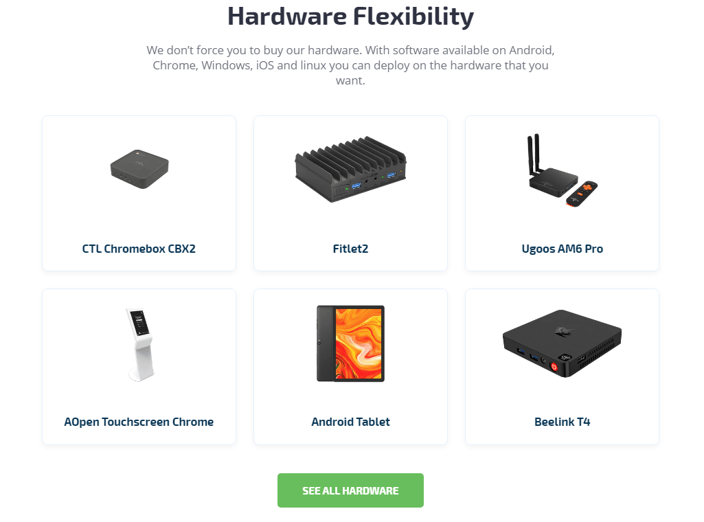 Jeśli planujesz pracować z Digital signage, musisz zainwestować w sprzęt. Piękno pracy z oprogramowaniem TelemetryTV polega na tym, że nie zmuszają cię do zakupu sprzętu.