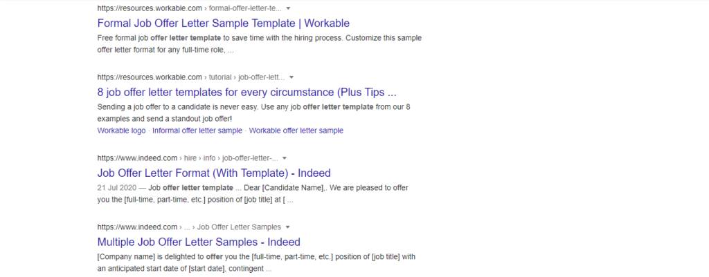 Freshteam umożliwia przesyłanie i dostosowywanie listów ofertowych. Ale możesz potrzebować trochę więcej pomocy przy opracowywaniu pierwszego listu ofertowego. Na szczęście Istnieje mnóstwo bezpłatnych próbek listów ofertowych online. Proste zapytanie w wyszukiwarce powinno ujawnić wiele szablonów do wyboru. Możesz użyć tych darmowych szablonów jako inspiracji do tworzenia listów ofertowych.