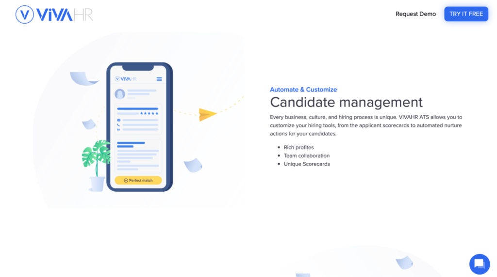 W zależności od wielkości firmy możesz skorzystać z kompleksowego rozwiązania HR. Korzystnie VIVAHR oferuje mieszankę funkcji śledzenia kandydatów i zasobów ludzkich, które zwykle zaspokajają bardziej duże modele biznesowe.